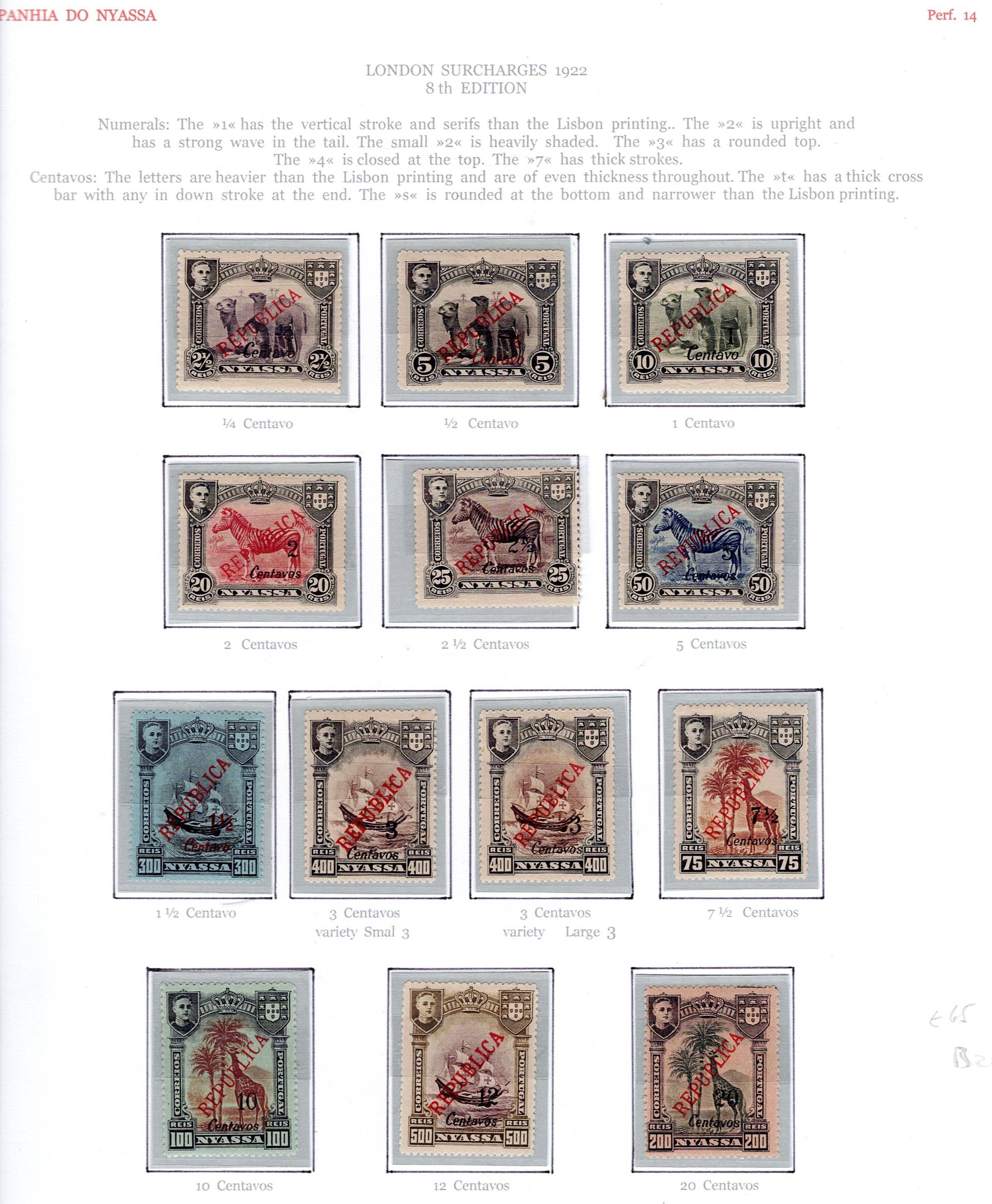 2075 imageNiassa Company 1922 D. Manuel II with Republic overprint - London. Complete series Mf#94-105, including a variety of 3 s/400 with the large "3", on new gummed and hinged stamps, printed by Waterlow & Sons, Ltd, London. Catalogue value €65.(Image 1)