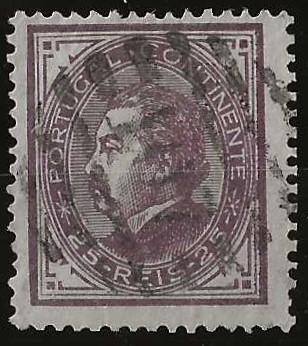 2179 imagePortugal * Numerical stamps from the 2nd postal reform * 1880/81 – D. Luís I. In profile. MF54, 25 réis, lilac-red. Used copy, without defects or repairs, obliterated with a black stamp “167 – CHAMUSCA”, rarity 4 Mundifil.(Image 1)