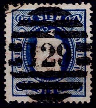2172 imagePortugal * Numerical stamps from the 2nd postal reform * 1867/70 – D. Luís I. Curved ribbon, serrated. MF34, 120 réis, blue, smooth paper, serrated. Used copy, without defects or repairs, obliterated with a black stamp “4 – ALDEIA GALLEGA DO RIBATEJO”. Well beaten.(Image 1)