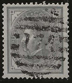 2184 imagePortugal * Numerical stamps from the 2nd postal reform * 1880/81 – D. Luís I. In profile. MF54, 25 réis, grey. Used copy, without defects or repairs, obliterated with a black stamp “174 – FERREIRA DO ZEZERE”, rarity 4 Mundifil.(Image 1)
