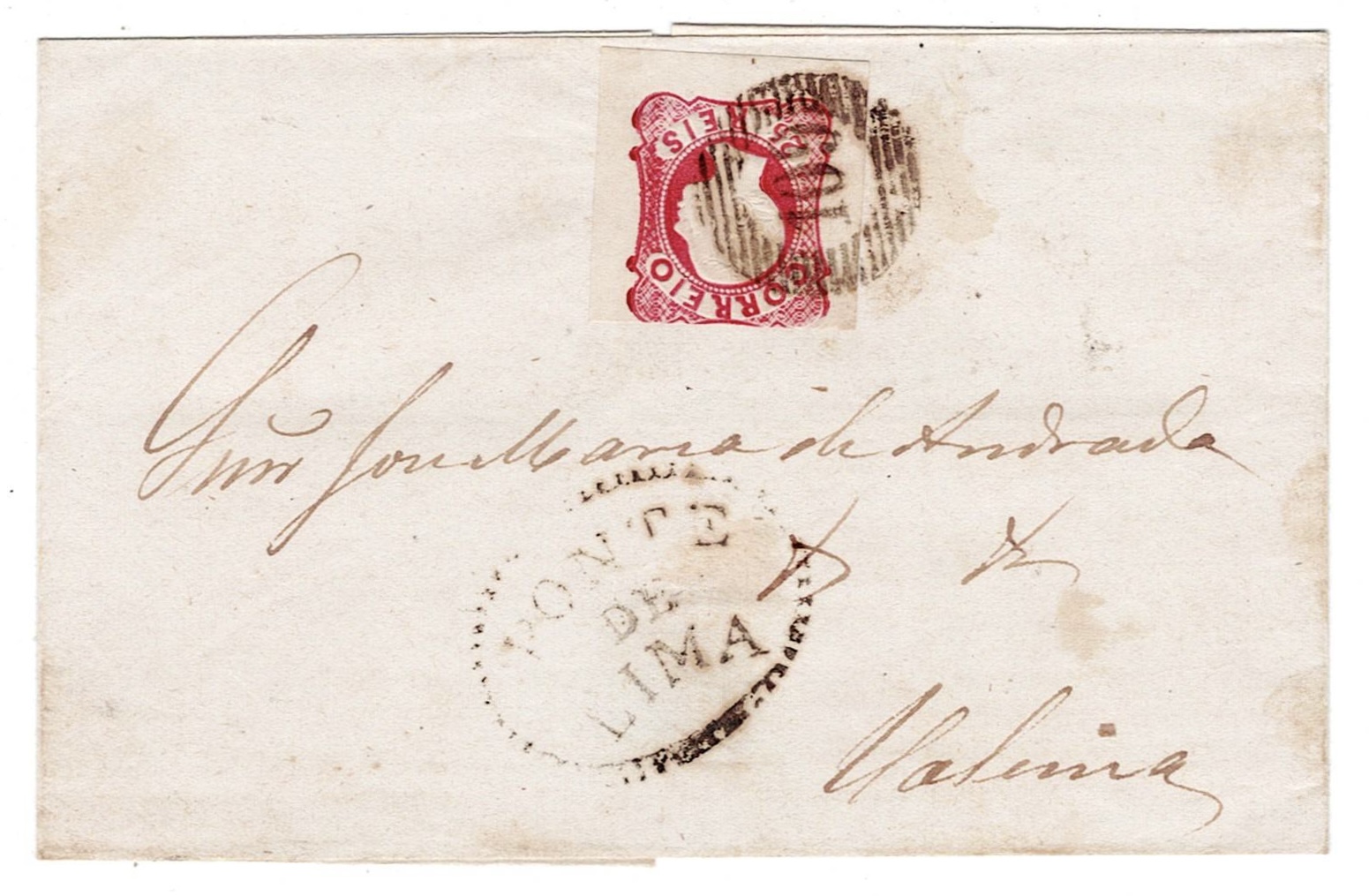 2195 imagePostmarks. Portugal. Issue of D. Pedro, curly hair, 25 reis pink stamp, in undated letter, from PONTE DE LIMA, postmark nº109, to Valença.(Image 1)
