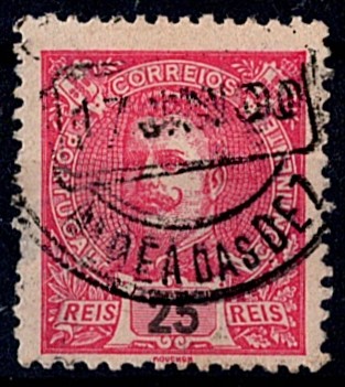 2201 imagePortugal * Dated circular stamps, type 1880 * 1898 – D. Carlos I Mouchon. MF141, 25 réis, carmine. Used copy, without defects or repairs, in good color, obliterated with a black stamp “ALDEA DAS DEZ”. MB and MR.(Image 1)