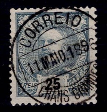 2202 imageMarcofilia Portugal dated circular stamps. D. Carlos Mouchon stamp with "CHANS GRANDES" stamp with 4 digits for the date stamp year. Not catalogued.(Image 1)