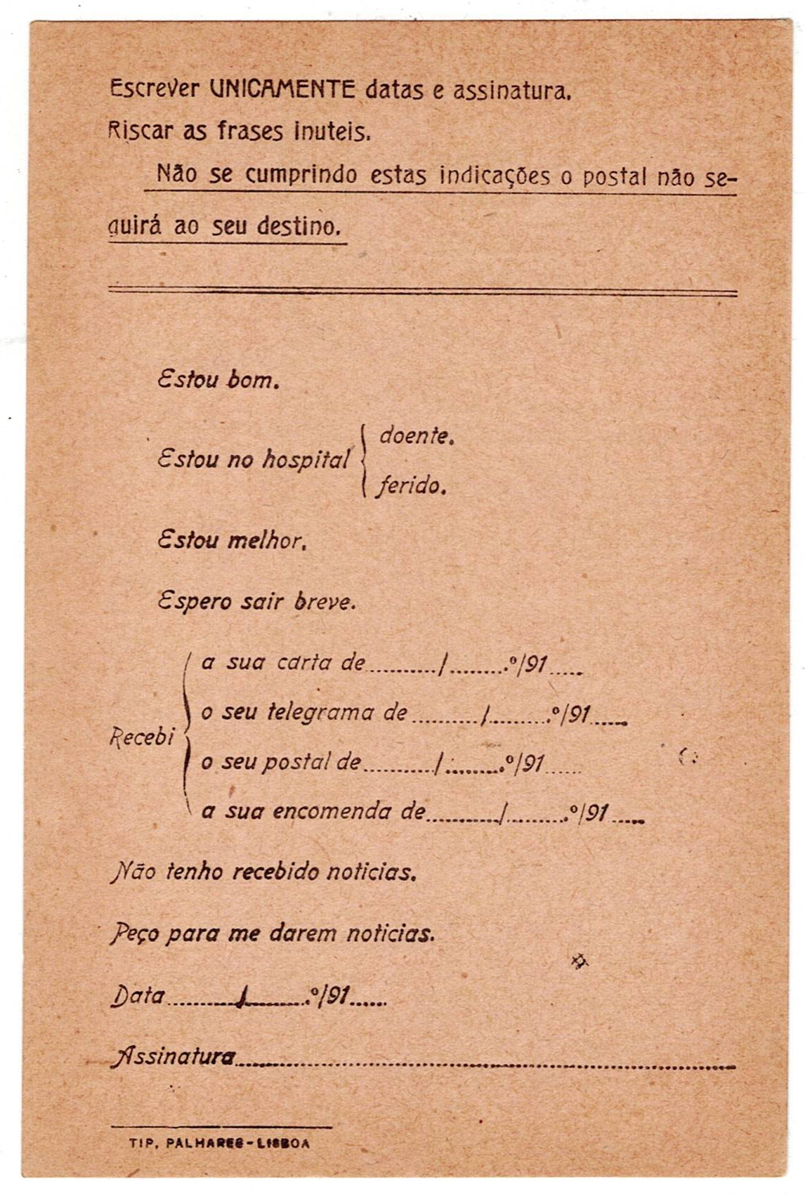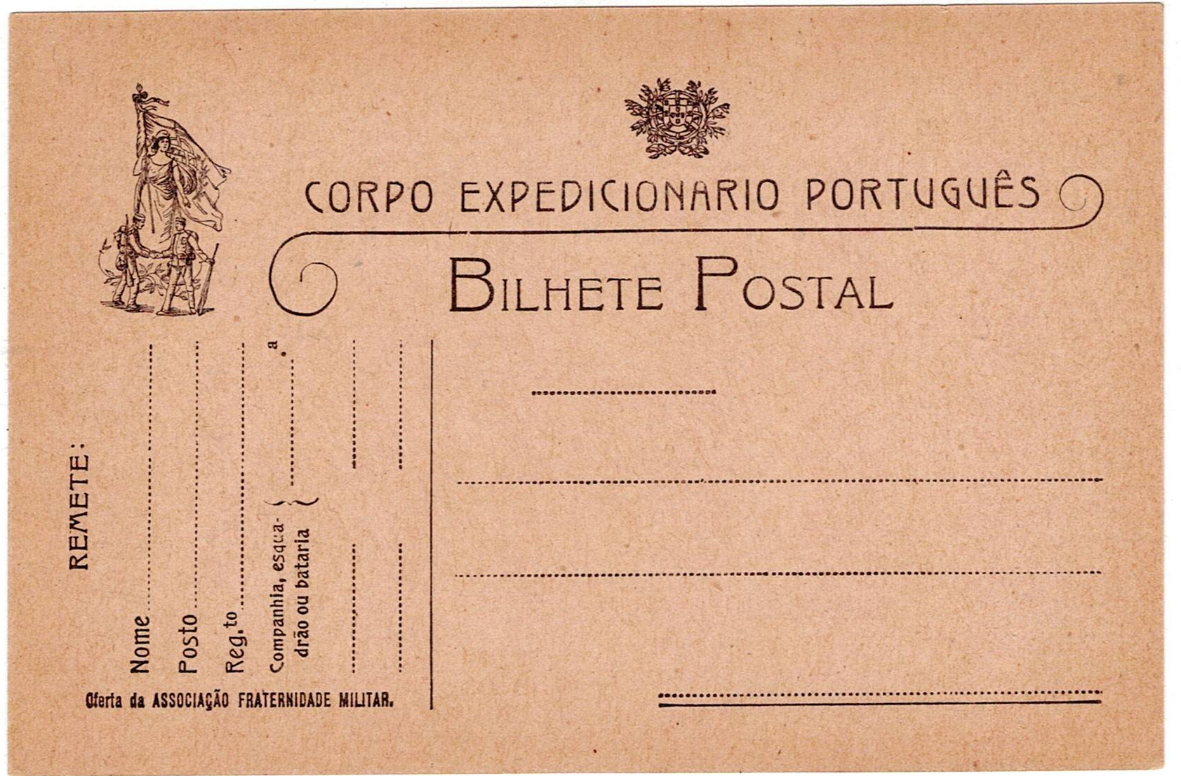 212 imagePostal stationery. Exempt from postage, from the Portuguese Expeditionary Corps, to be used by Portuguese military personnel in France. New postal stationery.(Image 1) (Image 2)