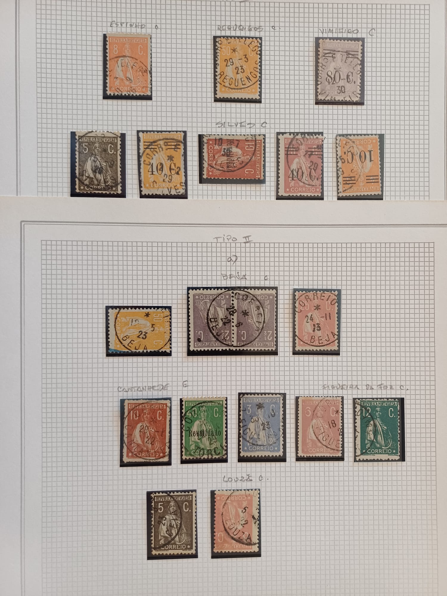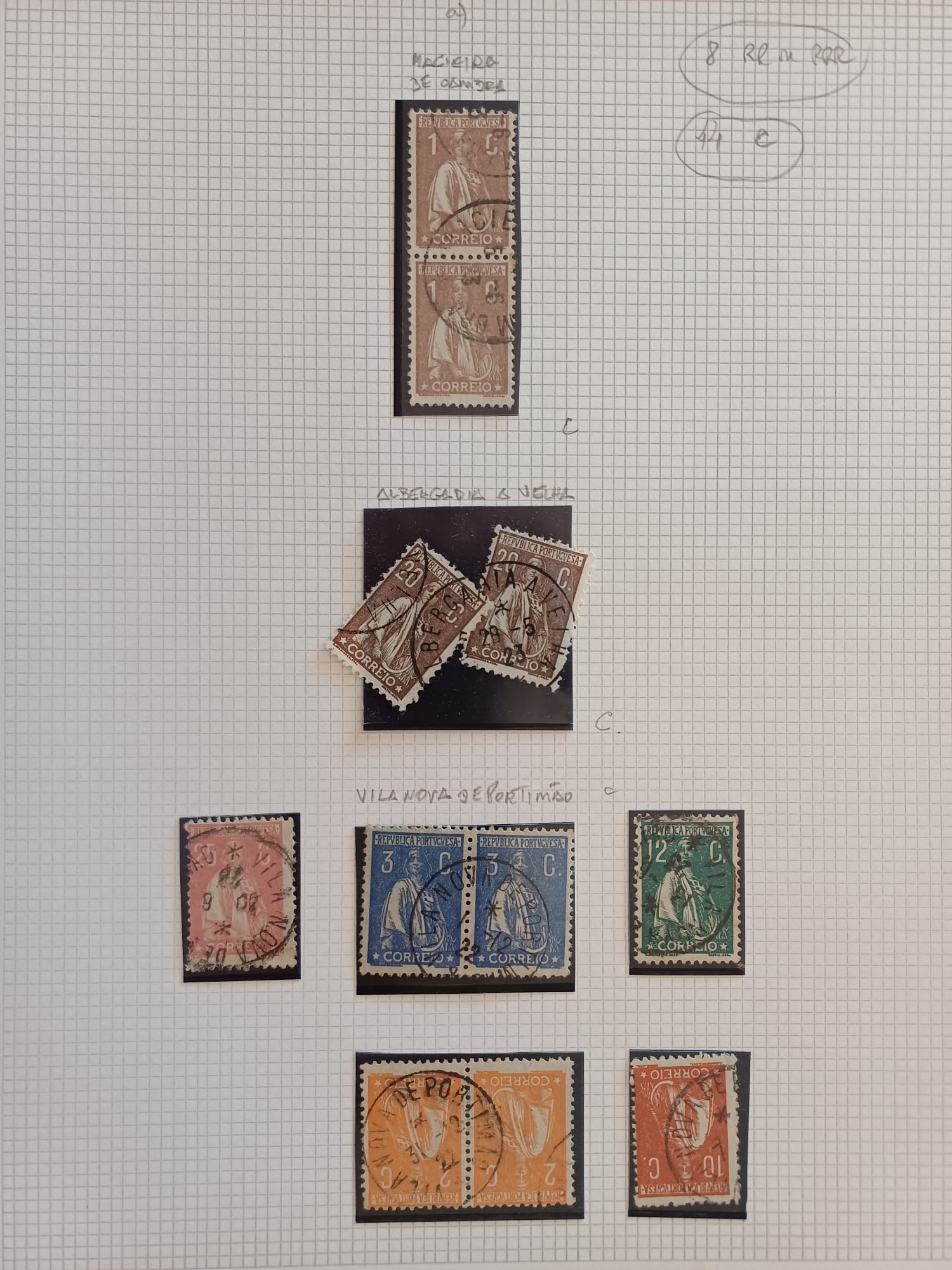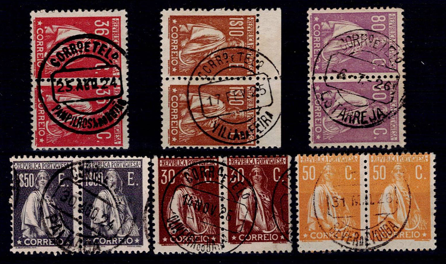“OLIVEIRA DO BAIRRO” and “SEVER DE VOUGA” on PAIRS of various CERES stamps from different issues.(Image 1)