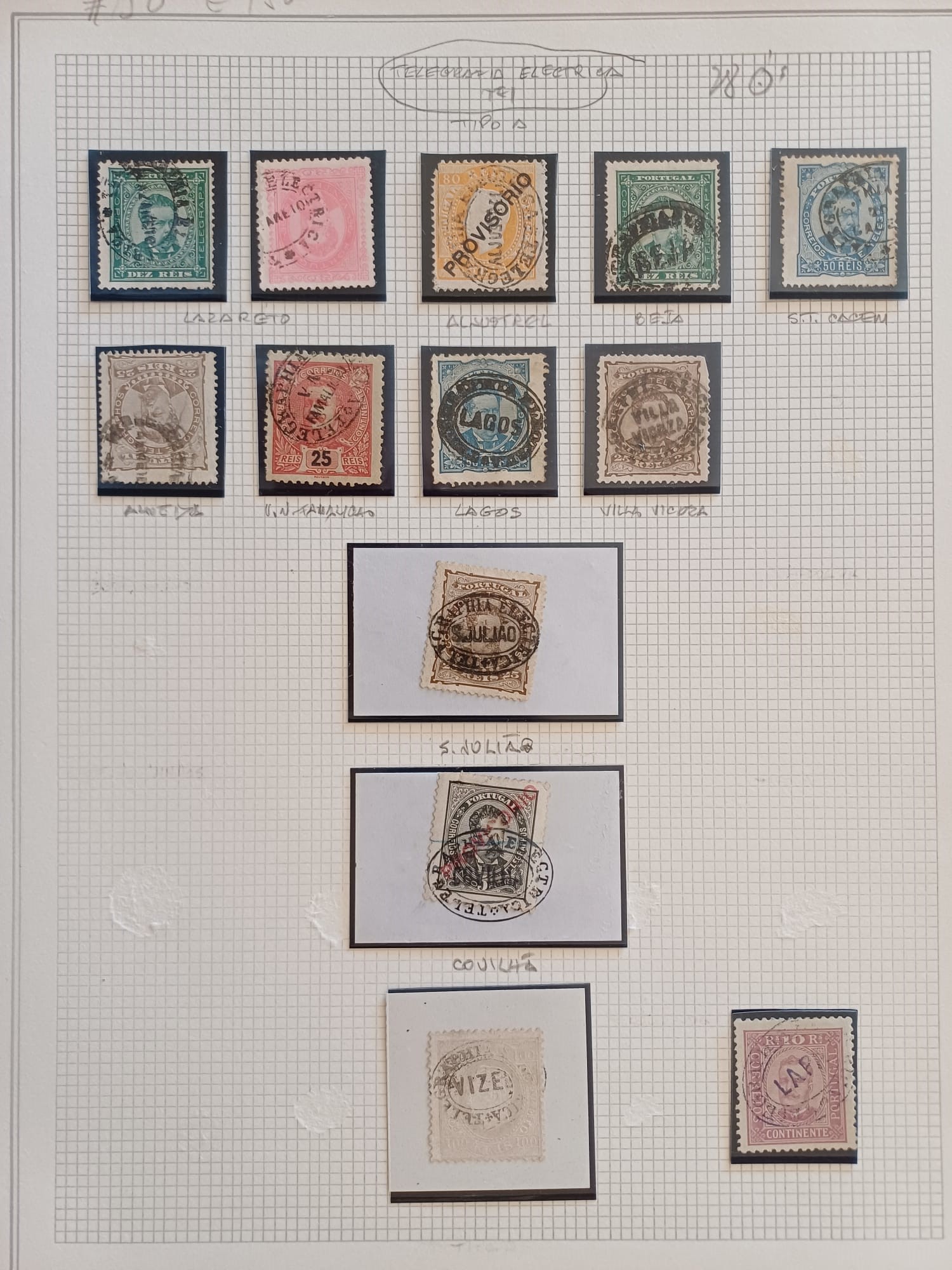 Marcofilia. Portugal. Electric Telegraphy. 28 electric telegraphy and telegraph station stamps, mounted