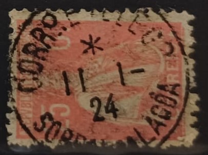 and one 25 reis on the front, with the postmark of the VILLA VIÇOZA telegraph station, in a double oval beaten in black.(Image 1)