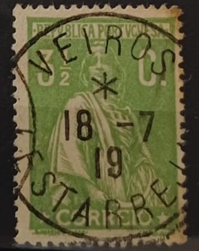 Marcophilia. Portugal French Type Stamps. CERES stamp with French Type VEIROS/ESTARREJA mark(Image 1)