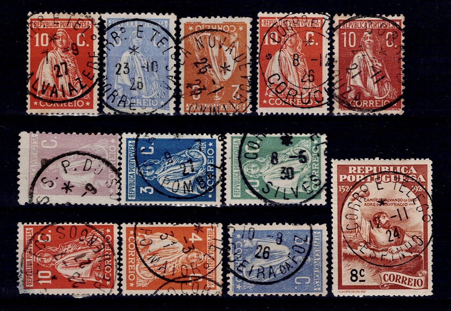 Marcofilia Portugal French-type stamps on CERES. Set of 11 Ceres stamps from various issues (+ 1 Camões