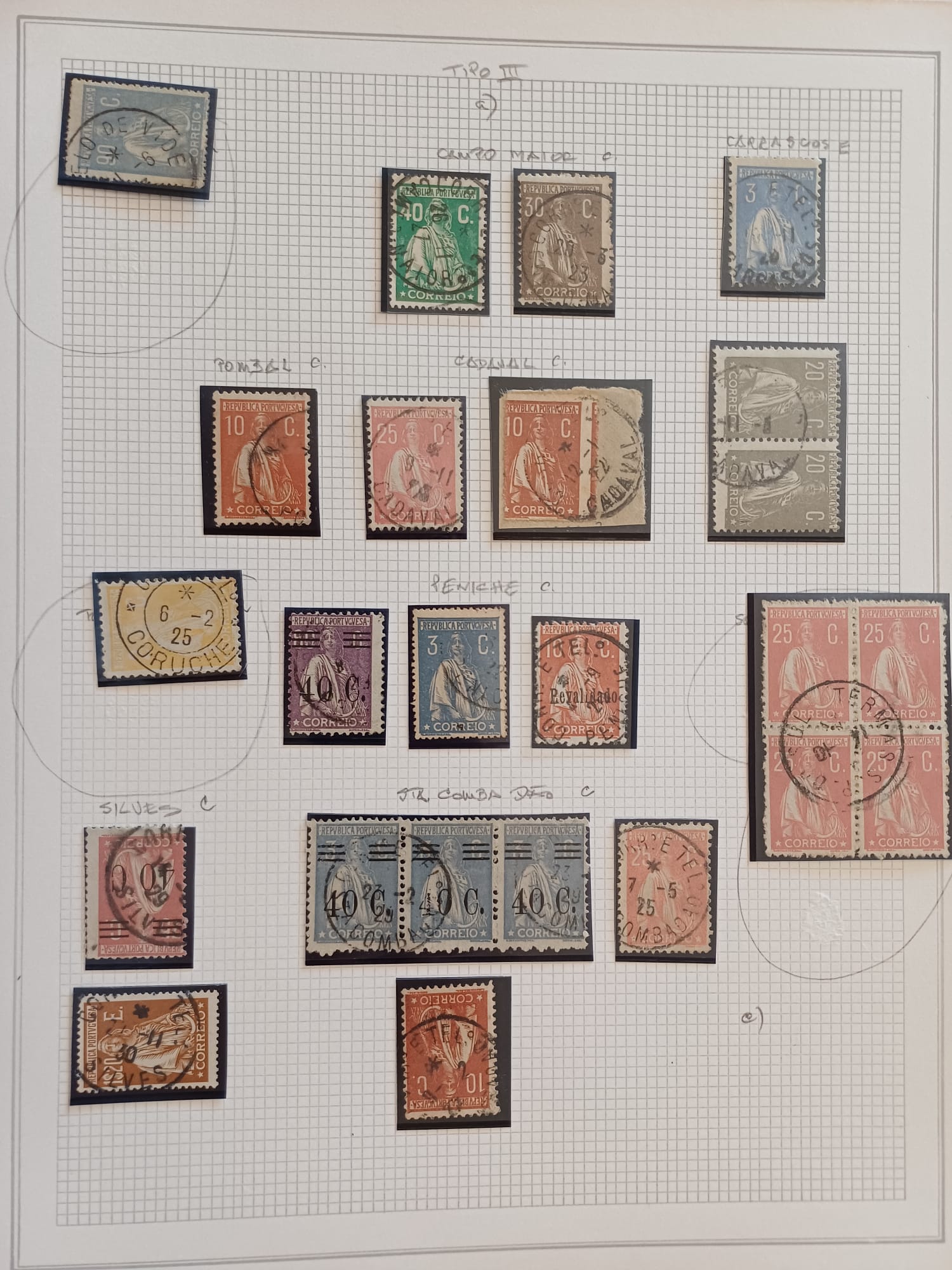 Marcofilia. Portugal French-type stamps. Set of 41 CERE stamps with French-type markings(Image 1)