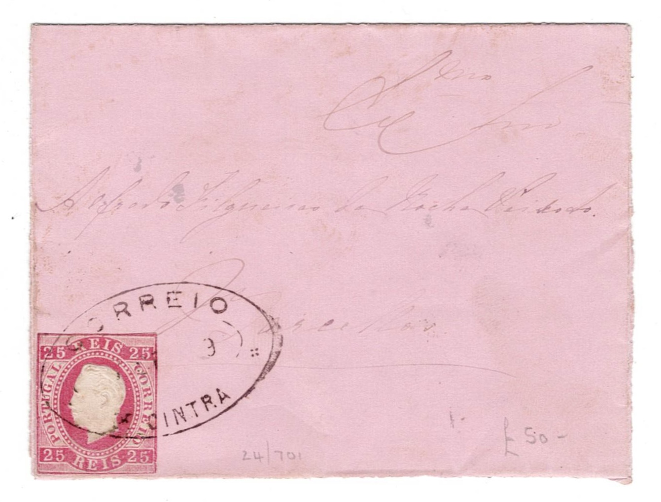 Marcofilia. Portugal. 1879. Double oval postmark. Letter sent from Cintra, transiting Lisbon on