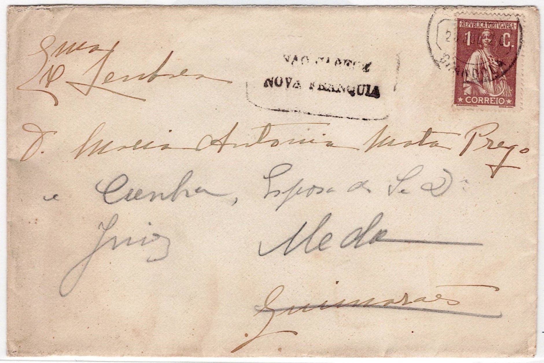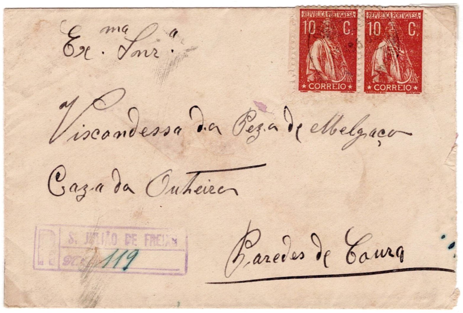 Letter sent (11.4.1922) registered no. 119 at the S. Julião de Freixo post office and addressed to