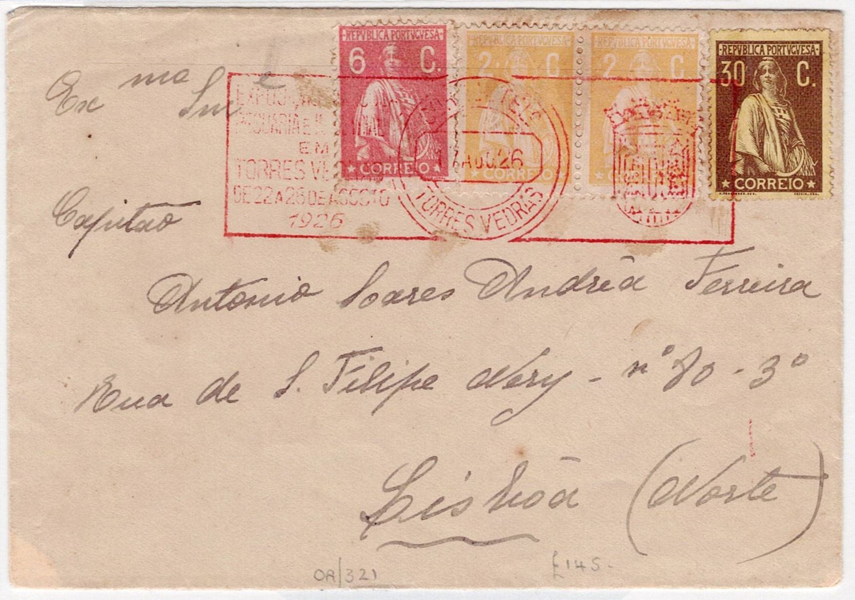 Marcofilia. Portugal. CERES issue. Letter issued from Torres Vedras on 17.8.1926, 40 cents postage