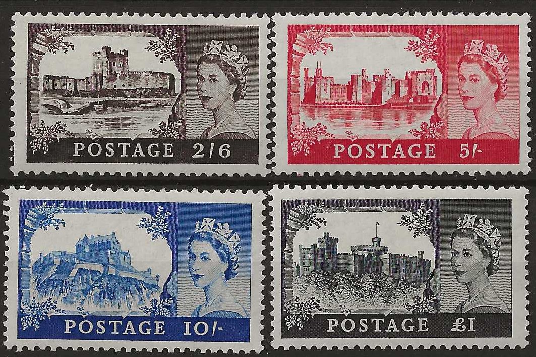 2351 imageEngland * 1955 – Queen Elizabeth and castles. Yv 283/86. Full mint set, with original gum and very slight hinge, without damages or repairs, with good colour. Catalogue value €380.00.(Image 1)