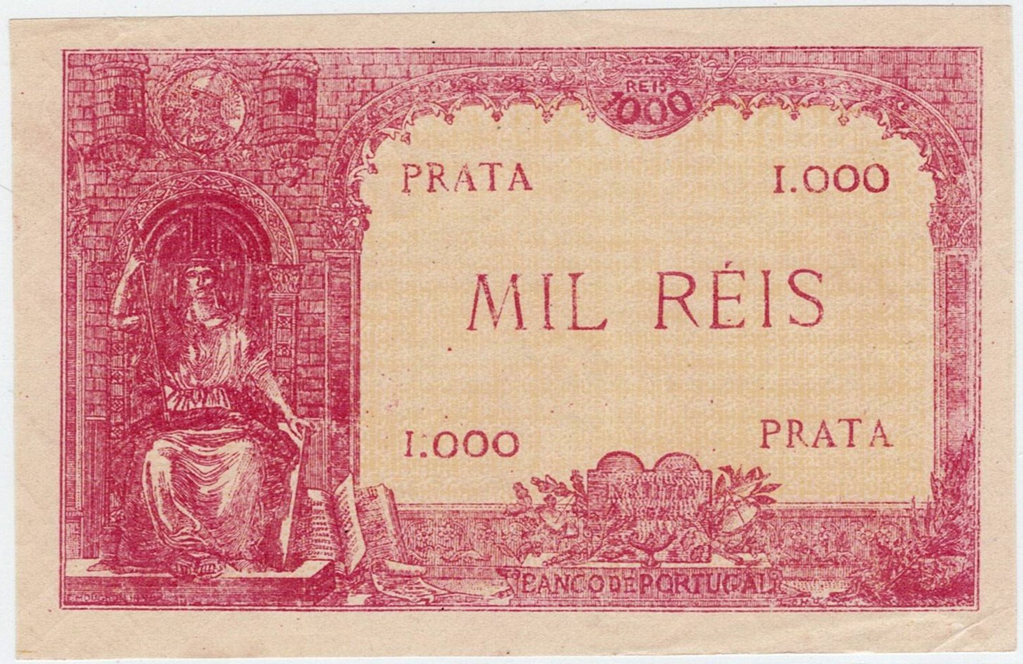 2357 imageVarious Notafilia Portugal. PROOFS - single-sided note. Proof or color test of the obverse of the 1,000 reis note, plate 3, dated September 30, 1910, on paper with the Bank of Portugal watermark. Pick #106.(Image 1)
