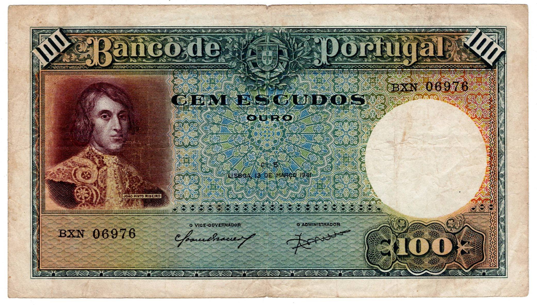 2358 imageVarious Notafilia PORTUGAL. 100 Escudos note, Lisbon, March 13, 1941.(Image 1) (Image 2)