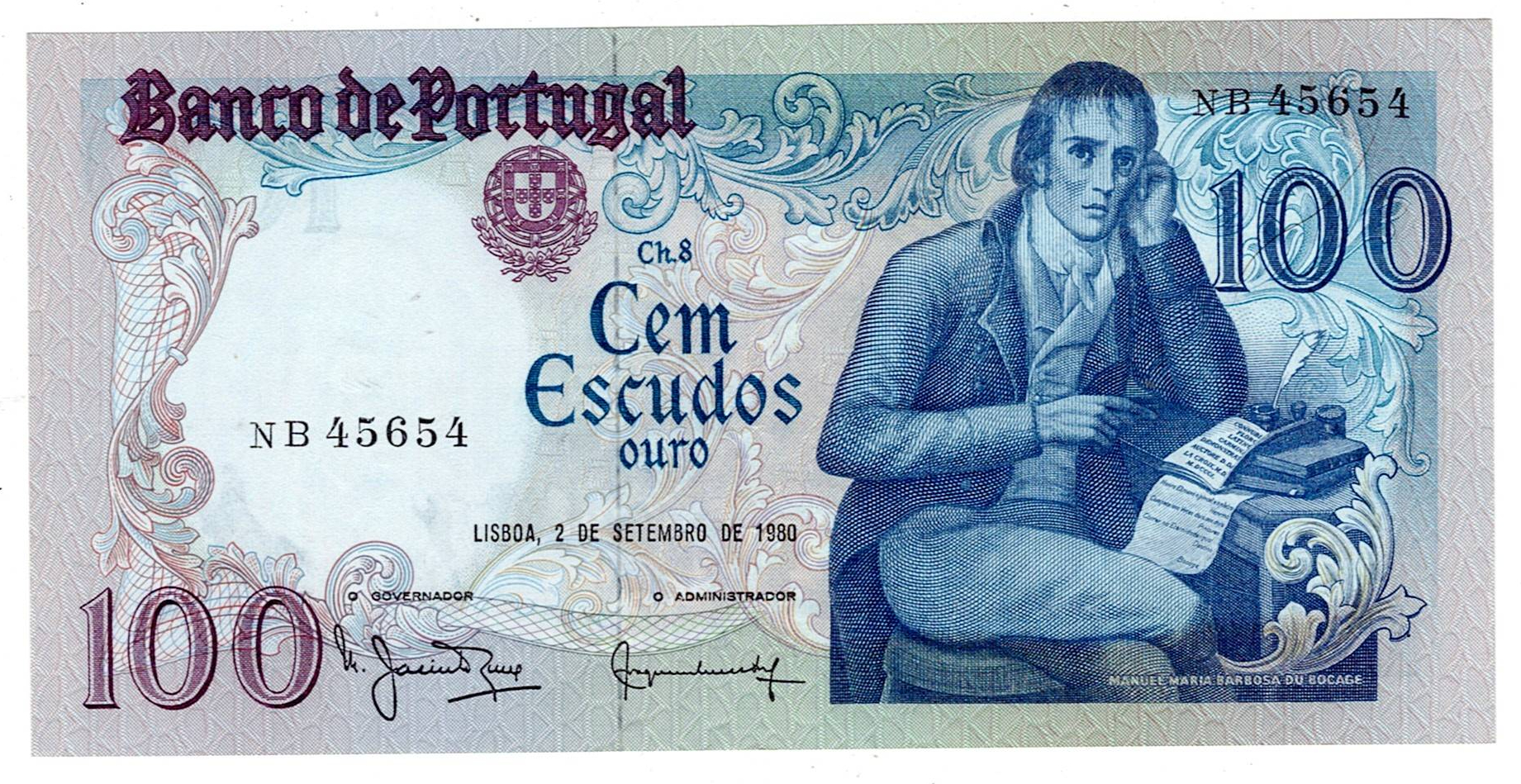 2359 imageVarious Notafilia PORTUGAL. 100 Escudos note, plate 8, Lisbon, 2 September 1980, palindrome #45654.(Image 1) (Image 2)