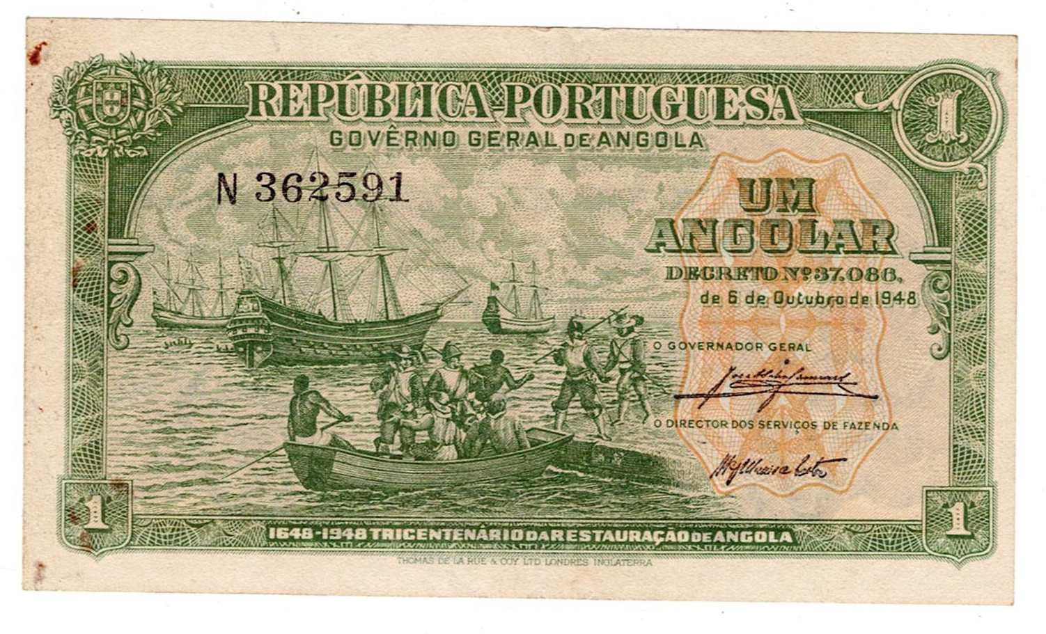 2360 imageVarious Notafilia ANGOLA. 1 Angolar note, Lisbon, 6 October 1948.(Image 1) (Image 2)