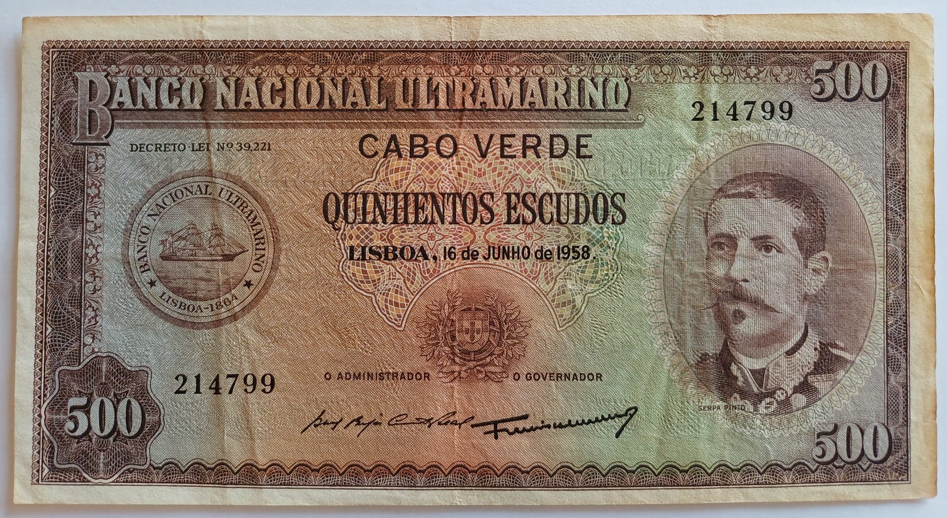 2367 imageVarious Notafilia Cape Verde. 500 esc. note, Lisbon, June 16, 1958..(Image 1) (Image 2)