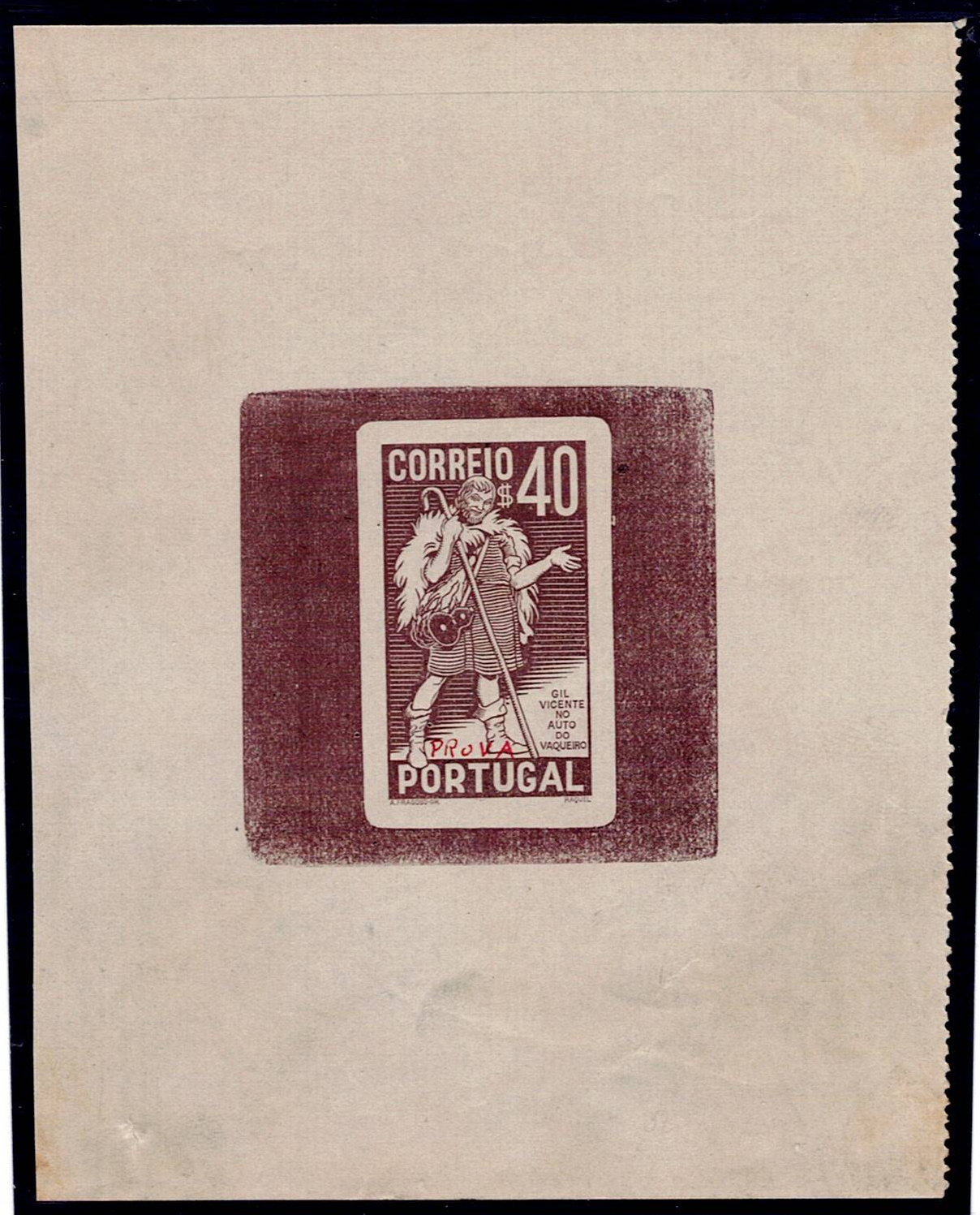 230 imageProofs Portugal 1937 4th Centenary of the Death of Gil Vicente. 1 proof of stamp Mf#577, $40, in brown, not perforated (color approved for the rate). MB and R.(Image 1)