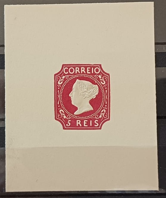 235 imageProofs Portugal 1935 1st Portuguese Philatelic Exhibition. Color proof of the upper part of the stamp, not indented, in red lilac, a color not approved for the issue, with good relief on smooth paper with wide margins.(Image 1)
