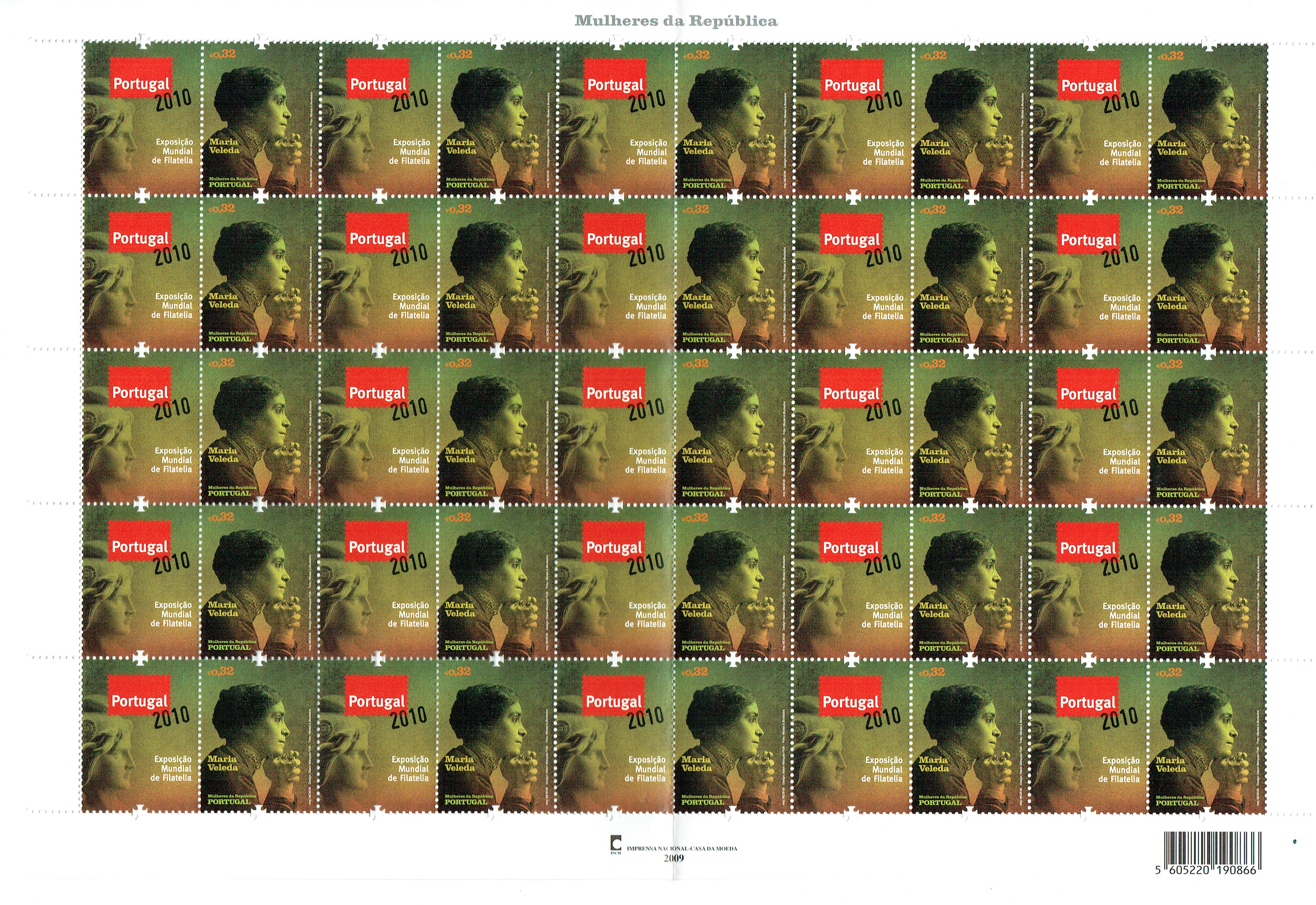 347 imagePortugal 2009 Women of the Republic "Portugal 2012". Sheet Mf#FC11, 2009, with 25 copies of stamp Mf#3896a. New sheet, with original gum and without hinge, without defects or repairs, in good color. Catalogue value €150.(Image 1)