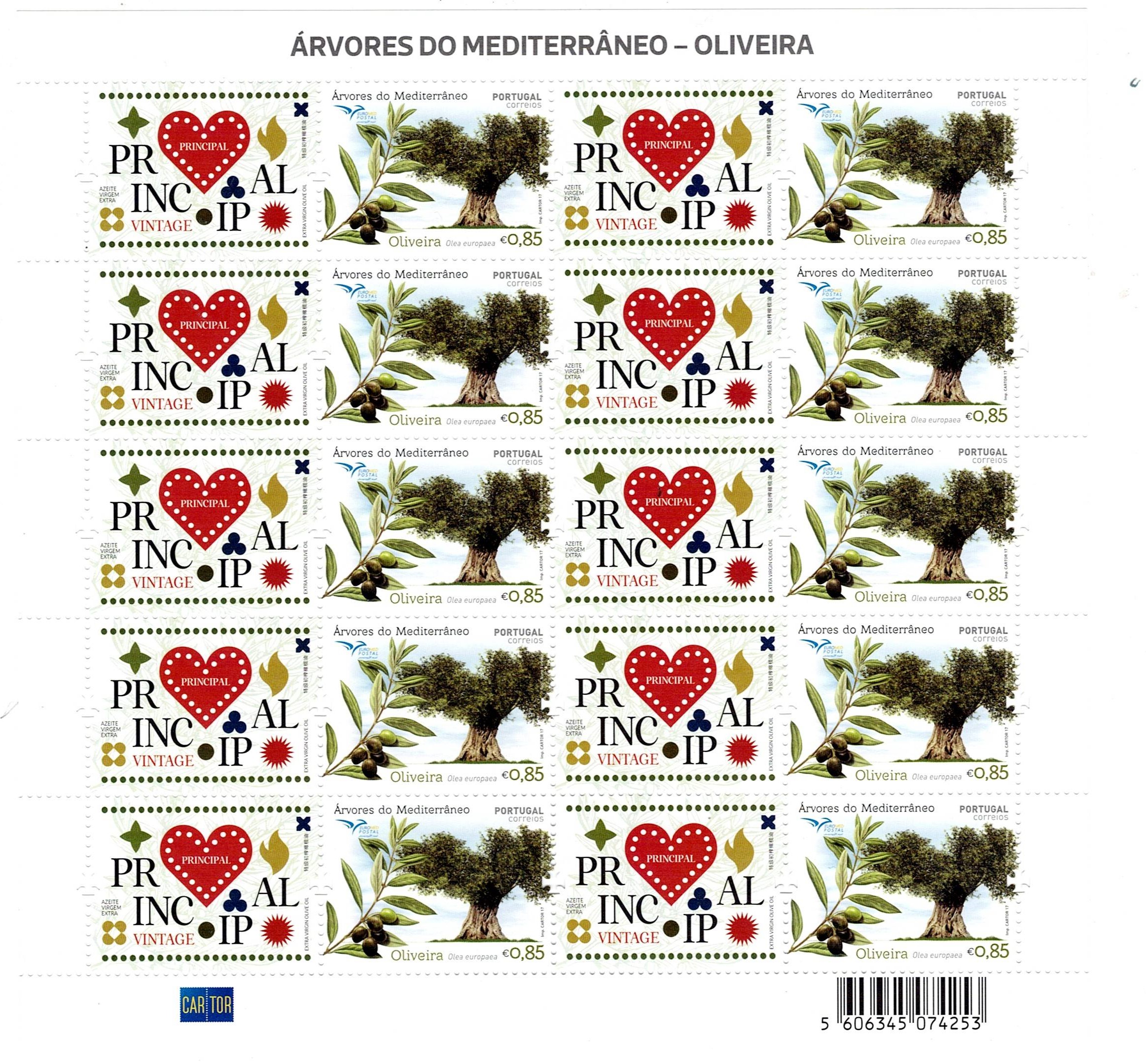 348 imagePortugal 2017 Olive Oil MAIN - Corporate Sheets. Sheet Mf#FC17, from 2017, with 10 copies of the Mf#4868a seal. New sheet, with original gum and without hinge, without defects or repairs, with good color. Catalog value €44.(Image 1)