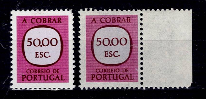 350 imagePortugal 1967-1984 Postage stamped with the legend "collect". Lot with 2 stamps Mf#P81 and 81a, 50$00, PLAIN paper and THICK PAPER variety, perforation 12. Both stamps are new, with gum and without hinge, without defects or repairs, with good color. Catalogue value € 59 .(Image 1)