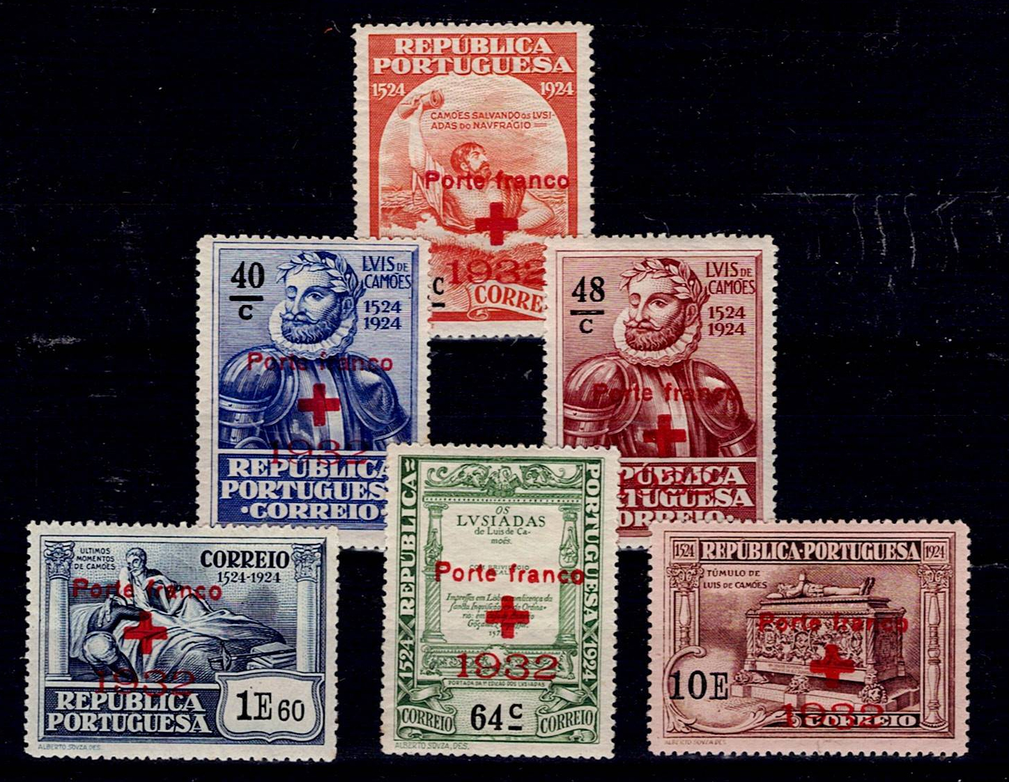 353 imagePortugal 1932 Porte Franco Curz Vermelha. Complete series Mf#CV35-40, new stamps with original gum and without hinge. Catalogue value €30.(Image 1)