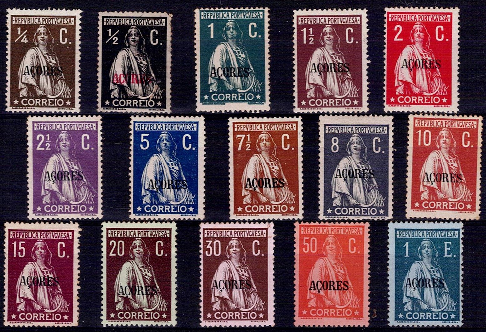 402 imageAzores 1912-13 Ceres. Complete series of Mf#149-163, porcelain paper, perforation 15. New stamps, with non-original gum or with gum and hinge, in good color. Catalogue value €245.(Image 1)