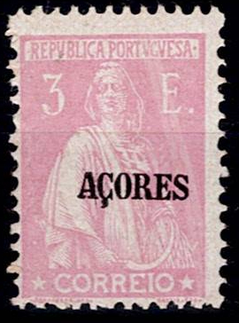 406 imageAzores * 1924/28 – Ceres. New colors and values. Stamps from the mainland with “AZORES” overprint. MF215, 3E, light pink, porcelain paper, 12x11 ½ perforation. New copy, with original hingeless gum, no defects or repairs, in good color. Catalogue value €280.(Image 1)