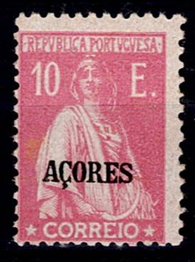 407 imageAzores * 1924/28 – Ceres. New colors and values. Stamps from the mainland with “AZORES” overprint. MF218, 10E, pink, porcelain paper, perforated 12x11 ½. New copy, with original hingeless gum, no defects or repairs, in good color. Catalogue value €160.(Image 1)