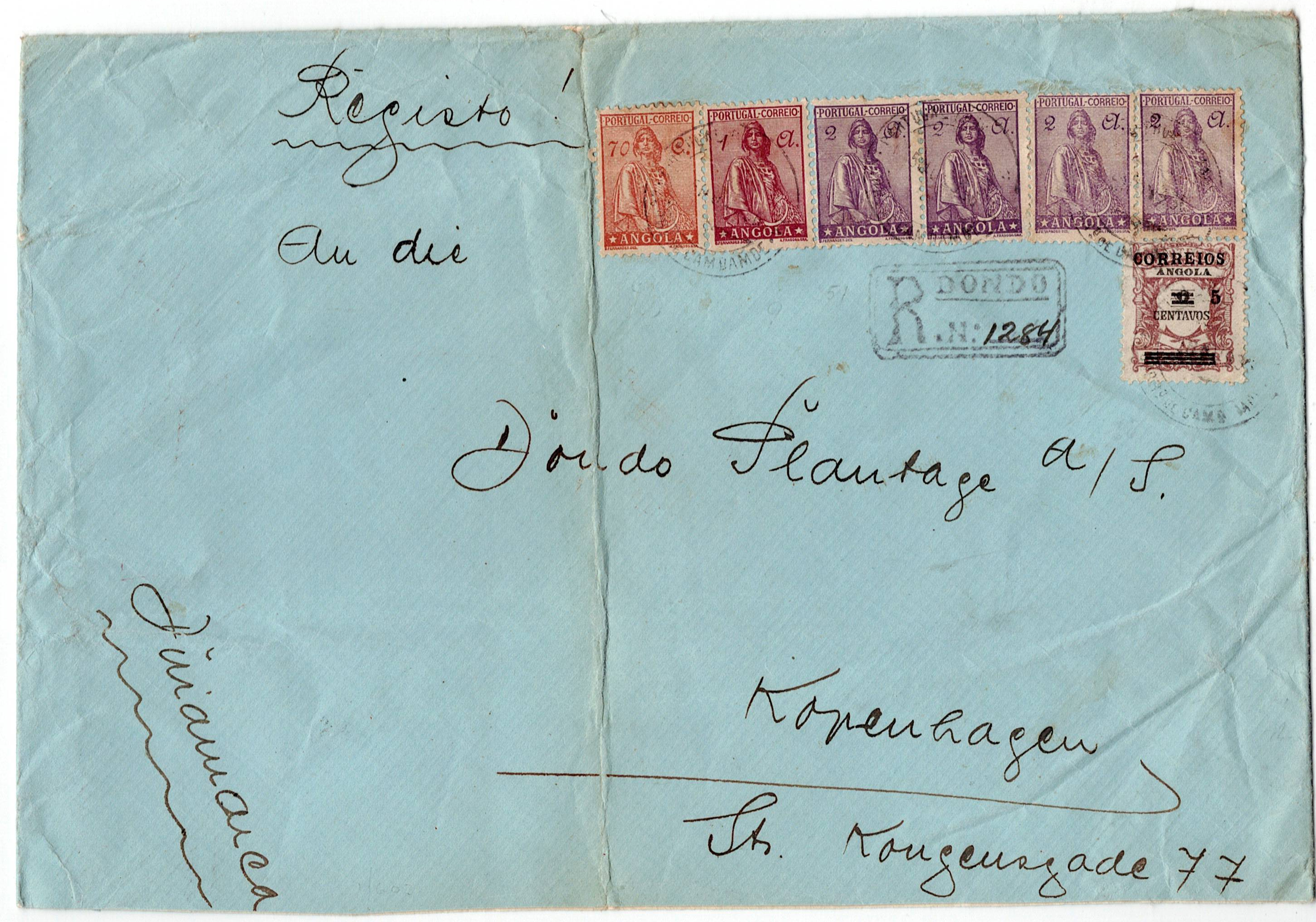 478 imageAngola. Letter registered in Dondo to Denmark, via Lisbon, 2 December 1936, postage of 9.75 Ang., cancelled in Cambembe, arrival on 9 December 1936.(Image 1)