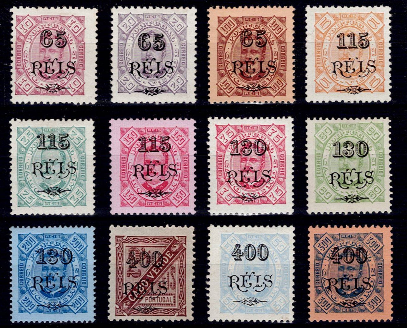 513 imageCape Verde 1902 – D. Carlos, Diogo Neto type with surcharge. Complete series Mf#61-72, porcelain paper / dotted. New stamps, with original gum and hinge. Catalogue value € 115 .(Image 1)