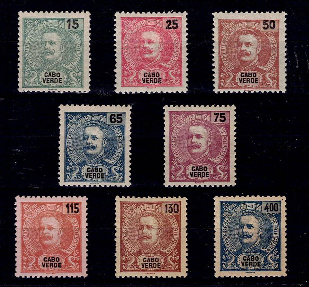 517 imageCape Verde 1903 D. Carlos I new colors and values. Complete series of Mf#77-84, smooth to lightly dotted paper, gummed and hinged stamps, with good color. Catalog value €150.(Image 1)