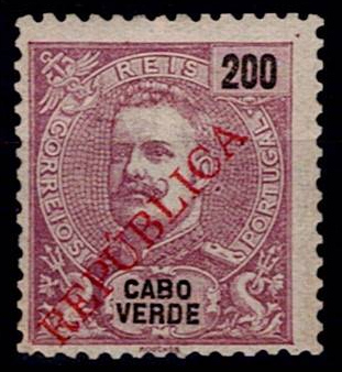 518 imageCape Verde 1911, D. Carlos I, Mouchon, "with PRIVATE INITIATIVE overprint." 200 reis stamp with Republic overprint. This overprint is not the overprint cataloged in MF#97 of the Mint, nor is it cataloged as existing in the Mundifil 2019 catalog. The origin of this overprint is unknown. Gummed copy. A curious lot, pending verification.(Image 1)