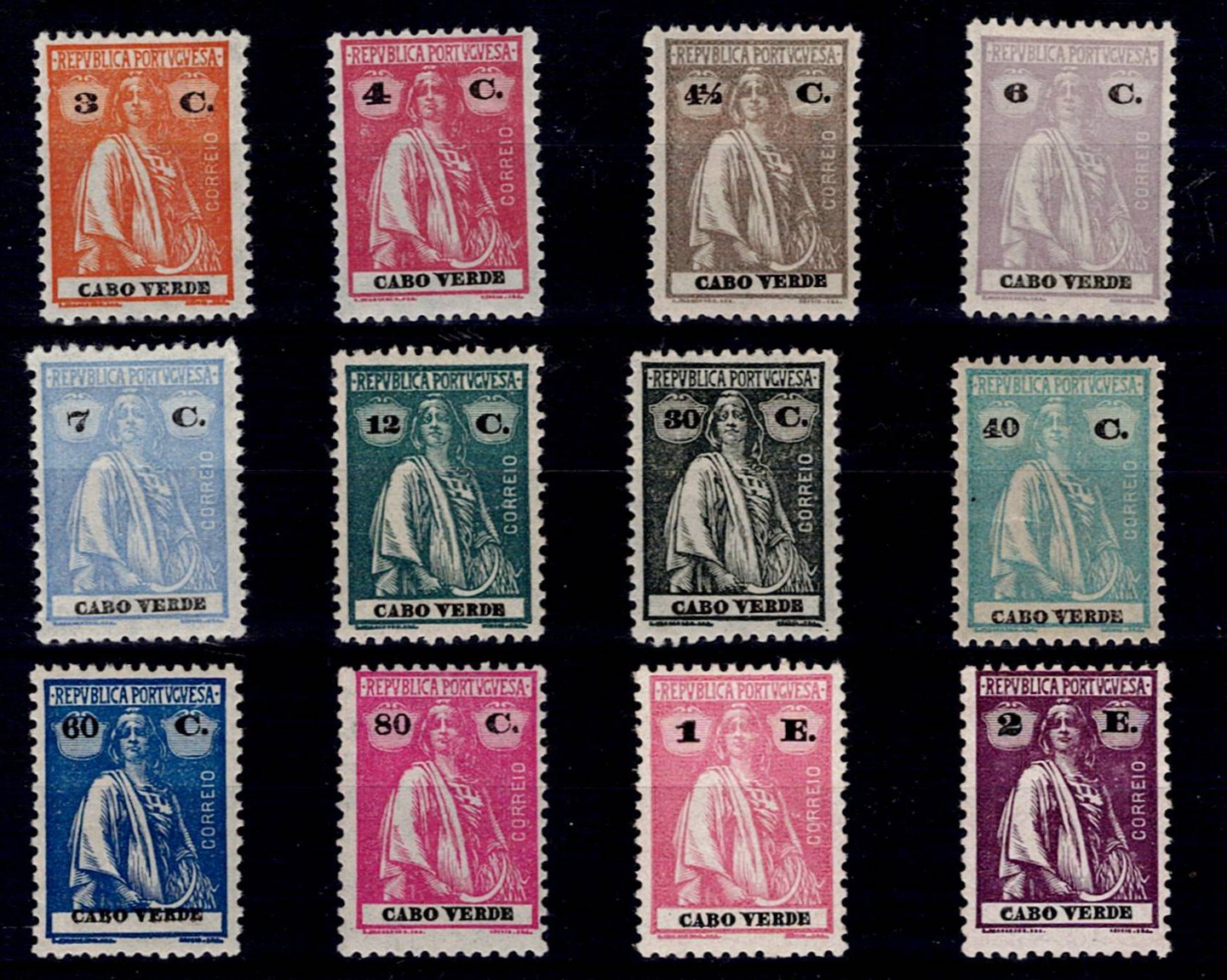 520 imageCape Verde 1922 Ceres. Complete series Mf#171-182 smooth or glossy paper, perforation 12 in new stamps with gum and hinge, perforation with slight flaws, with good color. Catalog value €40.(Image 1)
