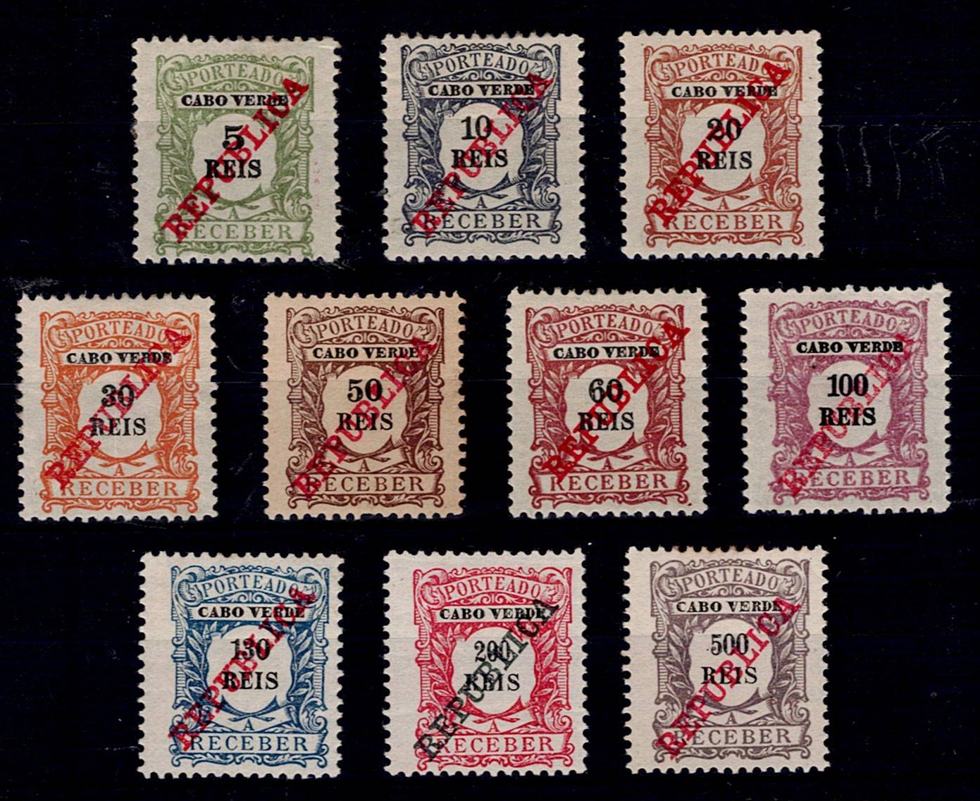 528 imageCape Verde 1911 – Type 1904 stamp with Republic surcharge. Complete series Mf#P11-20, 11 3/4 teeth. New copies, with gum and hinge, in good color. Catalogue value €22.(Image 1)