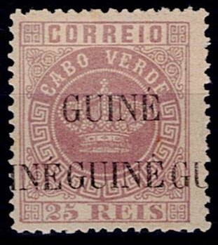 Guinea 1885 Stamps Crown of Cape Verde with large GUINEA overprint. Stamp Mf#21, 25 reis violet, smooth