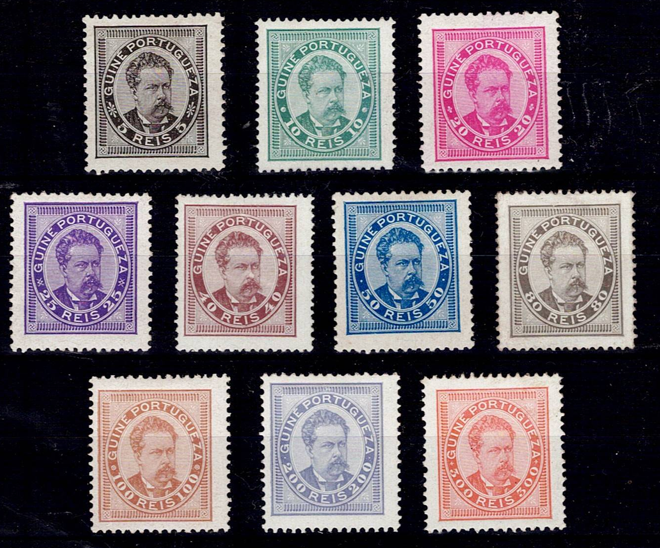 Guinea 1886 D. Luís I. Completed series Mf#24-33 in new stamps, with original gum and hinge, without