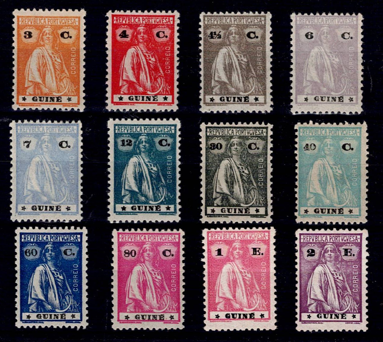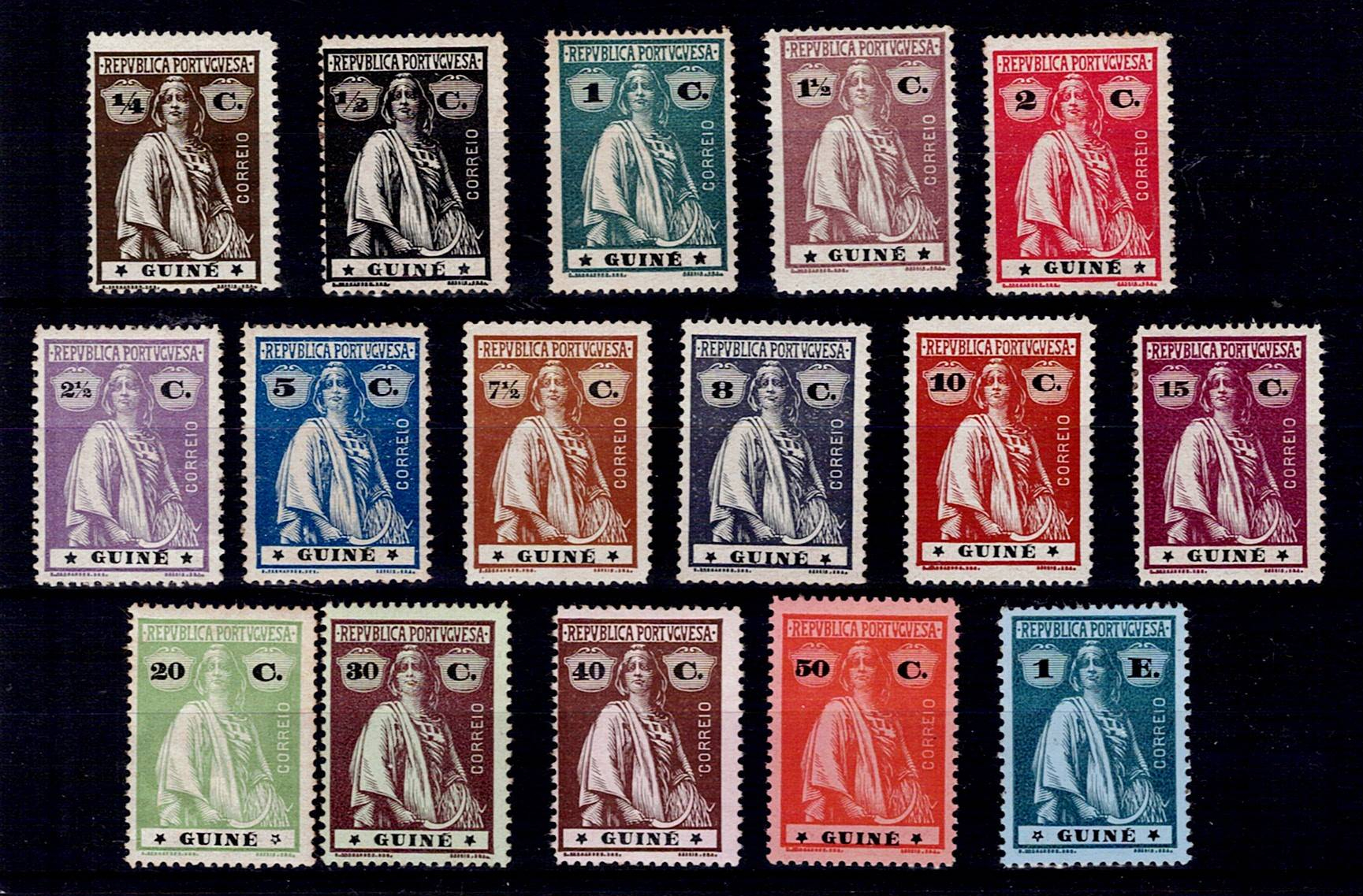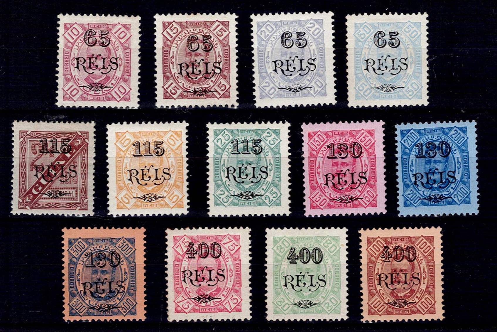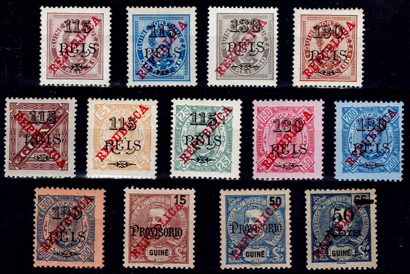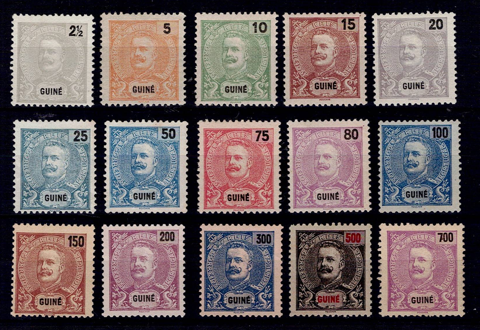Guinea 1915 – D. Luis and D. Carlos I with Republic overprint. Complete series Mf#159-171, on new