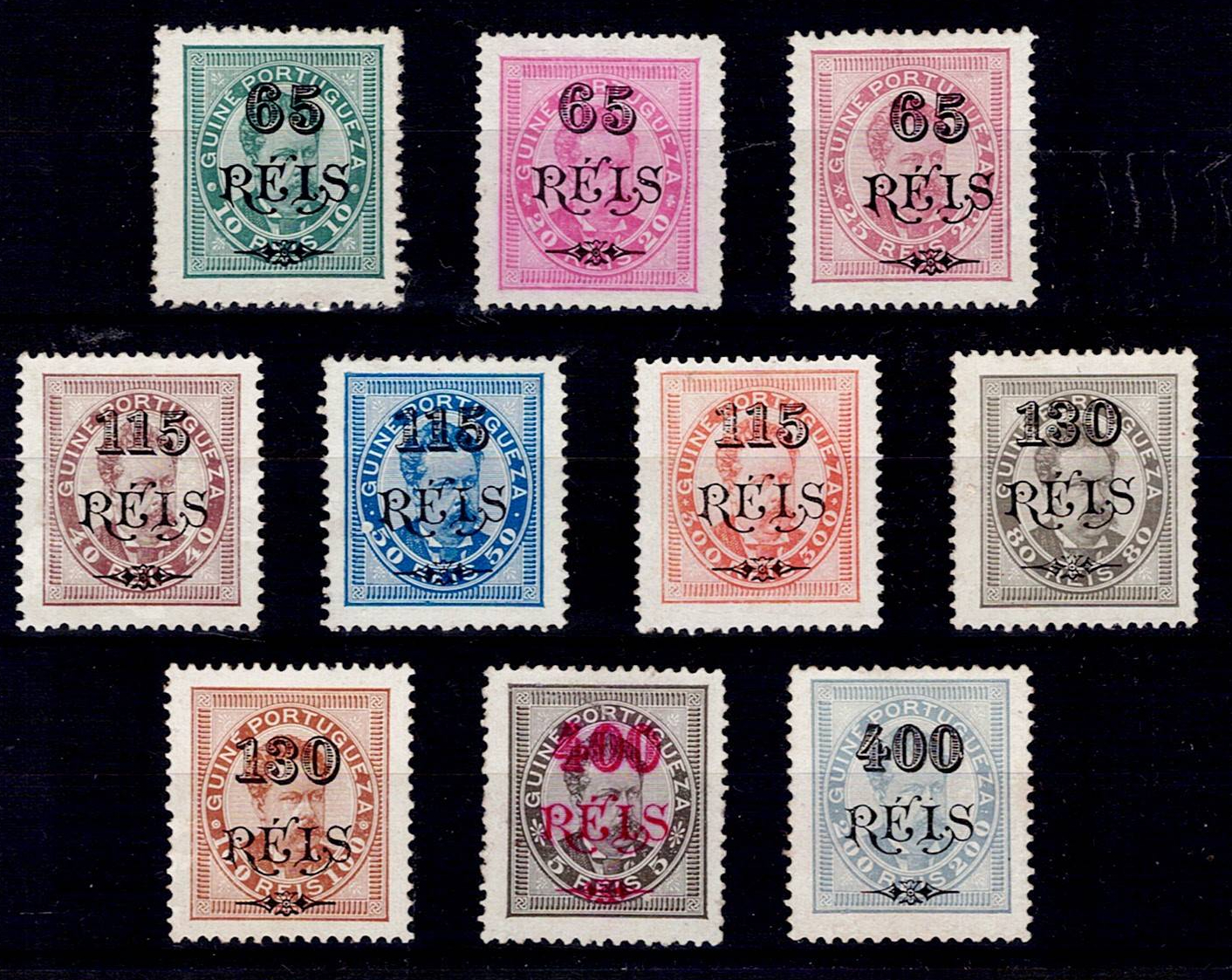 Guinea 1902 D. Luís I with surcharge. Complete series of Mf#62-71 in new stamps, ungummed, without