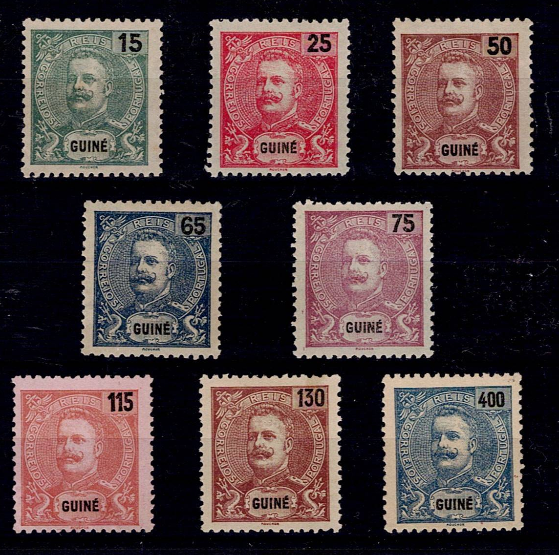 Guinea 1903 D. Carlos I Mouchon type, new colors and values. Complete series Mf#89-96, smooth paper, 11