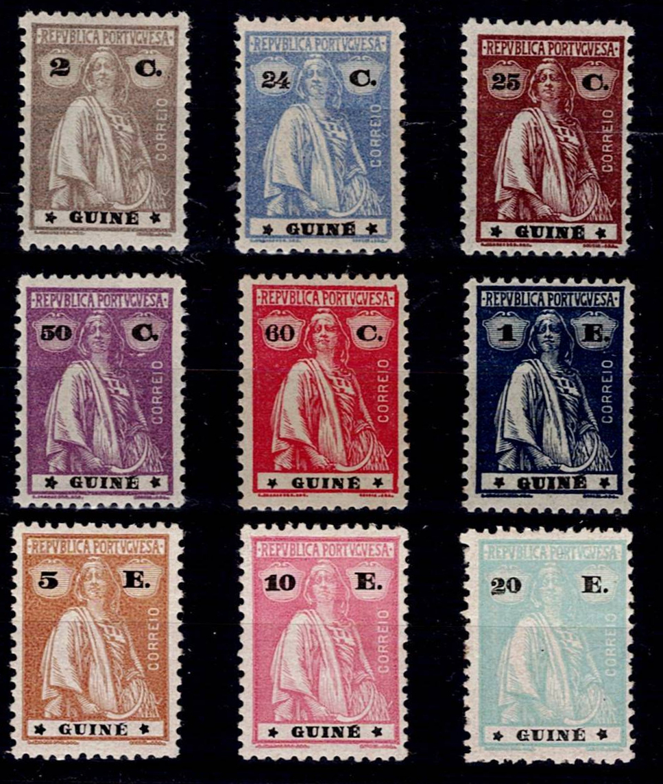 Guinea 1925 Ceres, new colors and values. Complete series Mf#192-200 perforation 12 in new stamps with