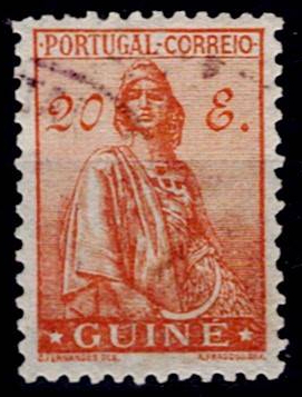 Guinea 1933 Ceres, new type. Stamp Mf#222, 20 esc. orange, dotted paper. Used stamp, without defects or