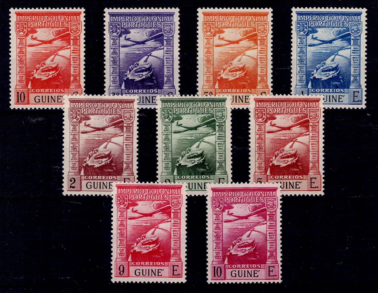 Guinea 1938 Colonial Empire, Air Mail. Complete series Mf#CA1-9, smooth paper, 13.5 perforation. New
