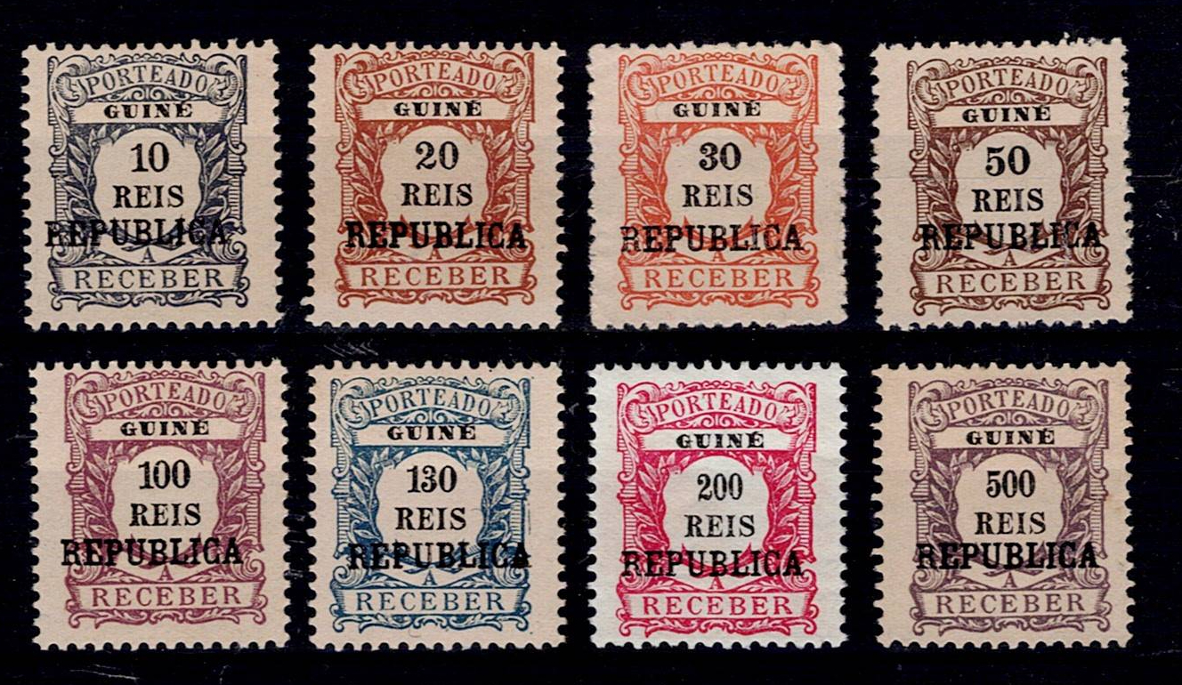 552 imageGuinea 1919 Postage stamp, with local Republic surcharge in black. Complete series Mf#P21-28, horizontal dotted paper, 11 3/4 notch. New stamps, ungummed, without defects or repairs. Catalog value €165(Image 1)