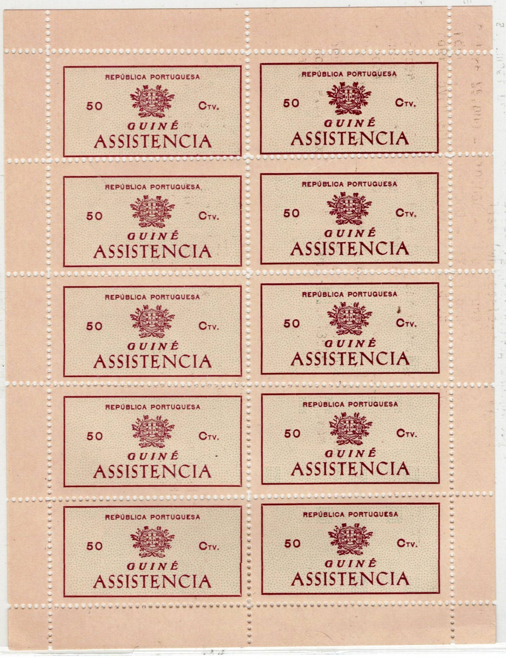 553 imageGuinea 1934 Postal Tax, Assistance. Complete sheet of 10 stamps Mf#IP8, 50 c. new without gum, as issued. Catalogue value €240.(Image 1)