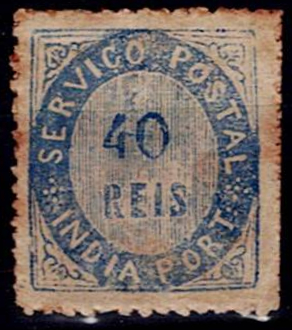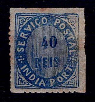 570 imageIndia 1876 Natives type IIB. Stamp Mf#29 of 40 reis, blue, type IIB, fine blue paper, 12.5 to 13.5 line notch. New copy, with gum and hinge, with traces of rust and without repairs. Catalog value €220.(Image 1)