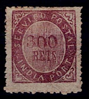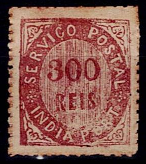 564 imageIndia 1873 Natives, types IA. Stamp Mf#18, 300 réis violet, fine blue paper, issue IA. New copy, ungummed, with repairs to the upper part of the stamp, in good color. Catalogue value €240.(Image 1)